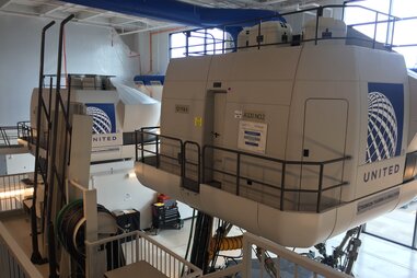 An Exterior View Of A Full Motion 777 Flight Simulator At The